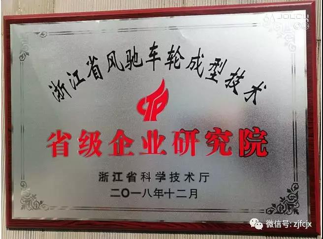 2018年12月,榮獲浙江省科學技術廳頒發(fā)的“省級企業(yè)研究院”。